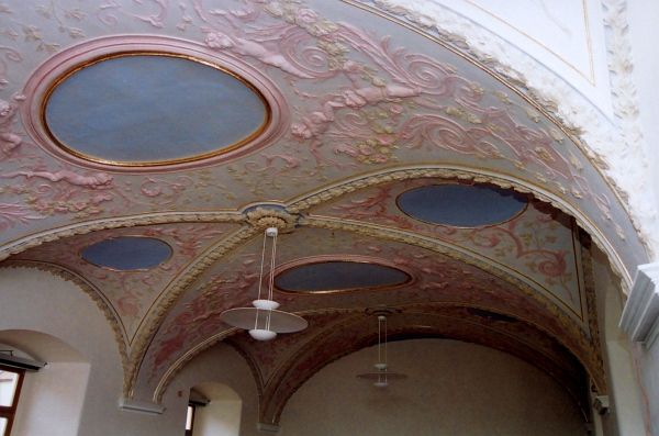 Autorem štukové výzdoby křížové klenby refektáře ze začátku 18. století je G. A. Cortellini, původní malovaná výzdoba zrcadel se nedochovala. Na hladkých plochách klenby se uplatňují postavy puttů s vegetabilními motivy. Barevnost výzdoby stropu byla rekonstruována podle nalezených fragmentů polychromie.