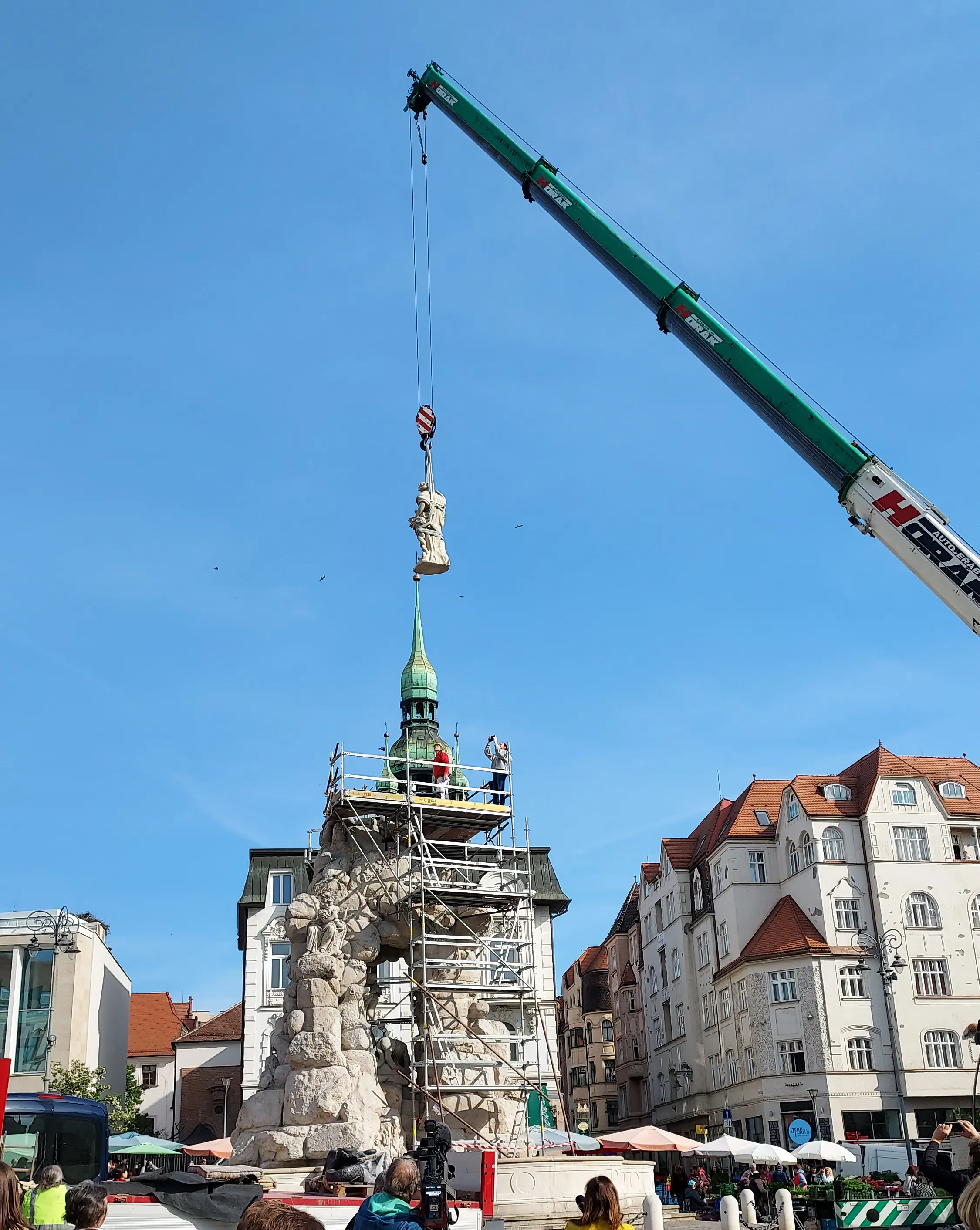 Při poslední restaurátorské obnově v letech 2024–2025 byla vrcholová socha Evropy nahrazena výduskem z umělého kamene. Originál sochy je nyní umístěn v budově Úřadu městské části Brno-střed, Dominikánská 2.