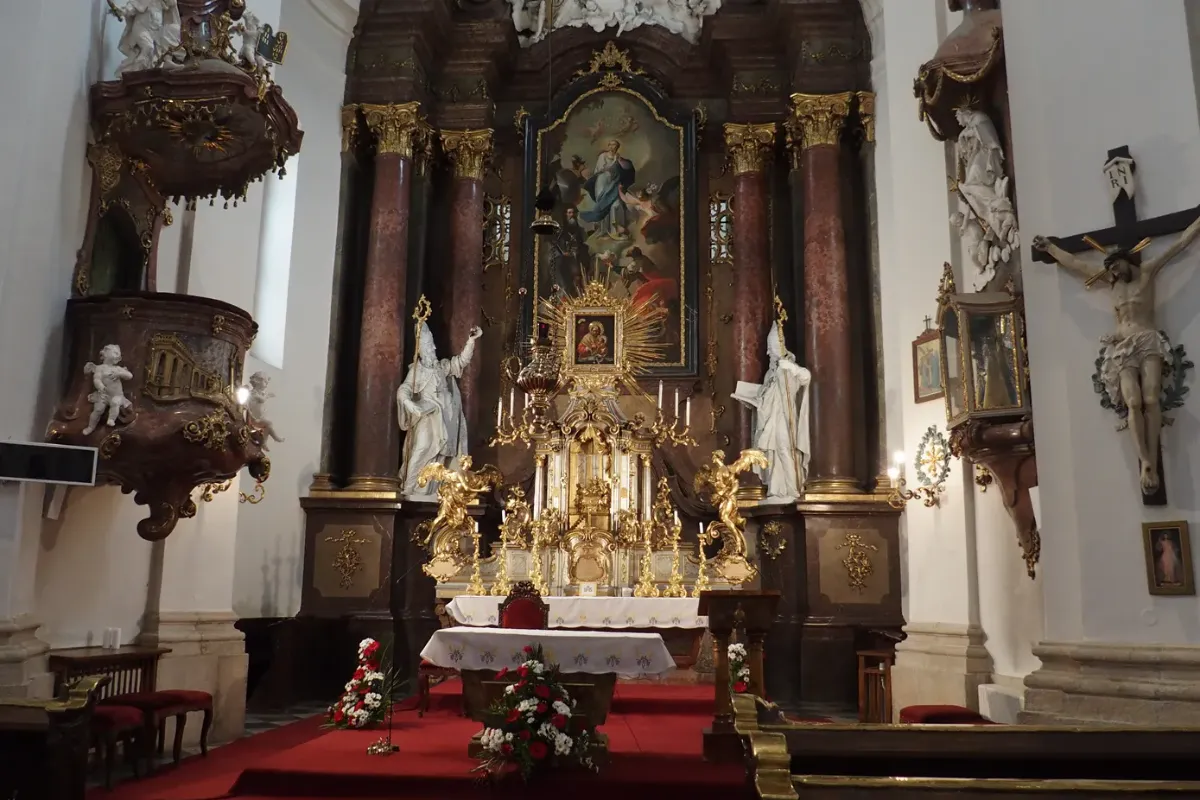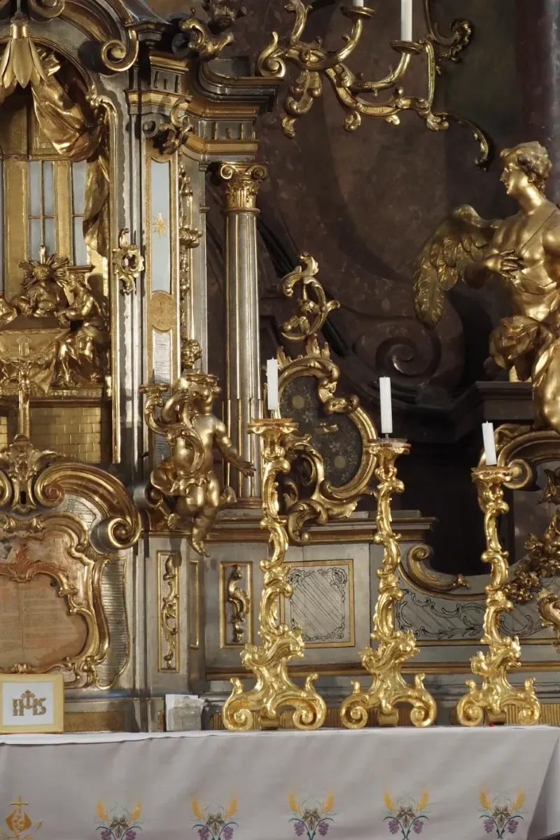 - Restaurování bočních oltářů, kazatelny a baldachýnu se sochou sv. Jana Nepomuckého.