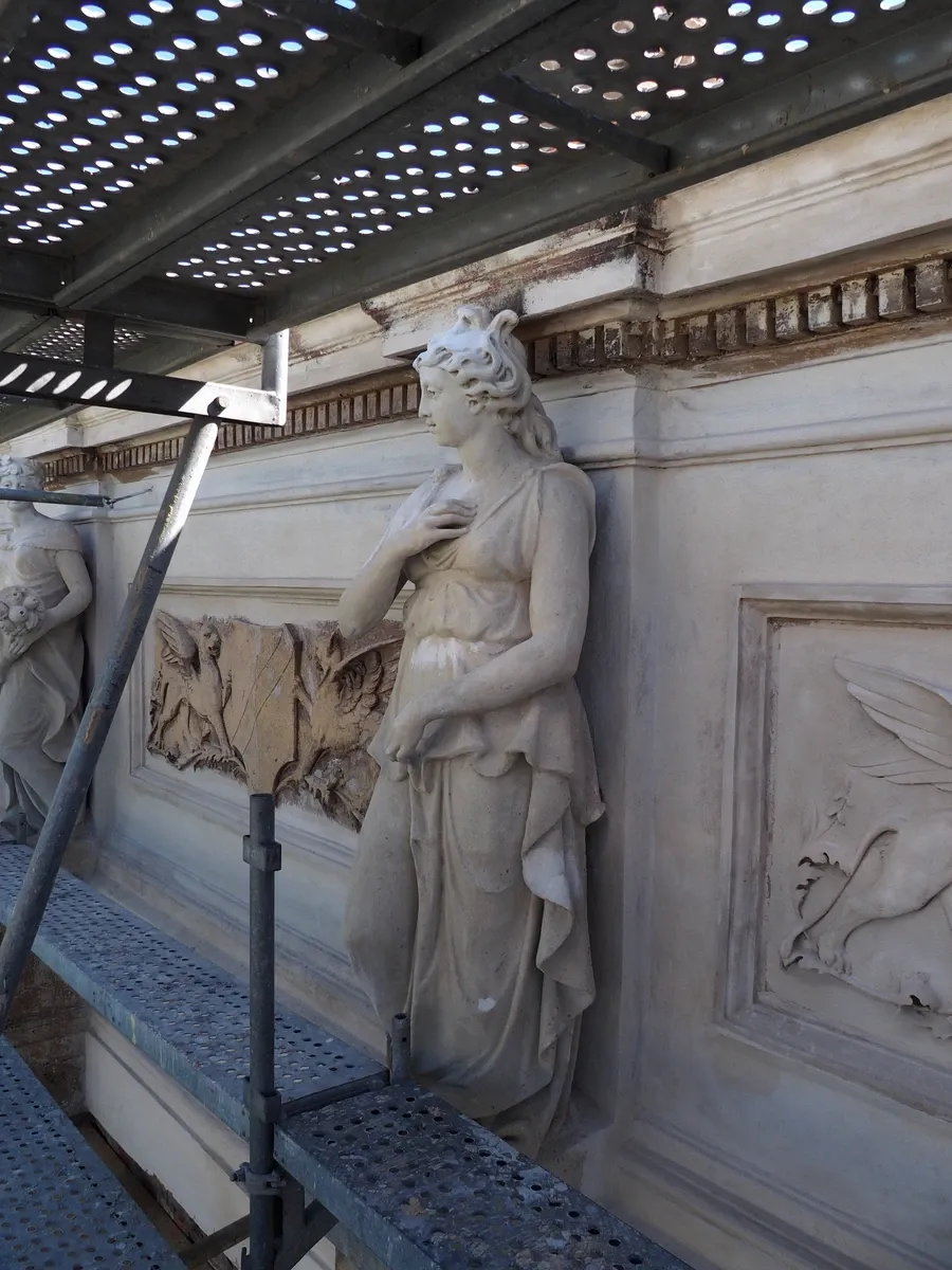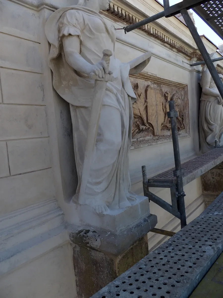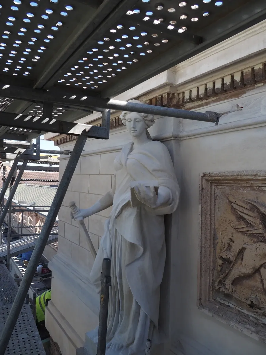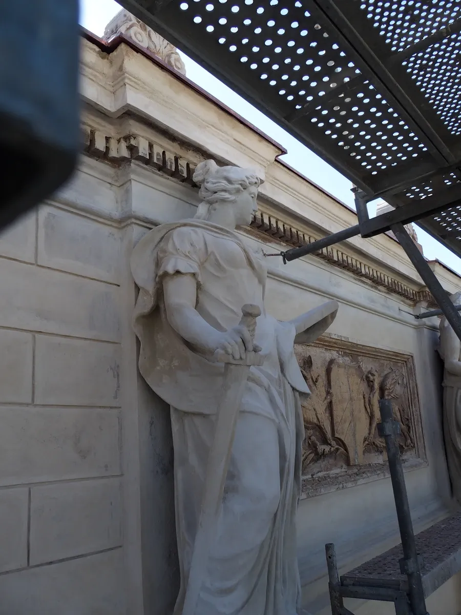 V roce 2017 jsme provedli památkovou obnovu souboru soch umístěných na atice budovy. Sochy byly demontovány a nahrazeny kopiemi – výdusky z umělého kamene. Originály byly zrekonstruovány a uloženy v interiéru budovy.