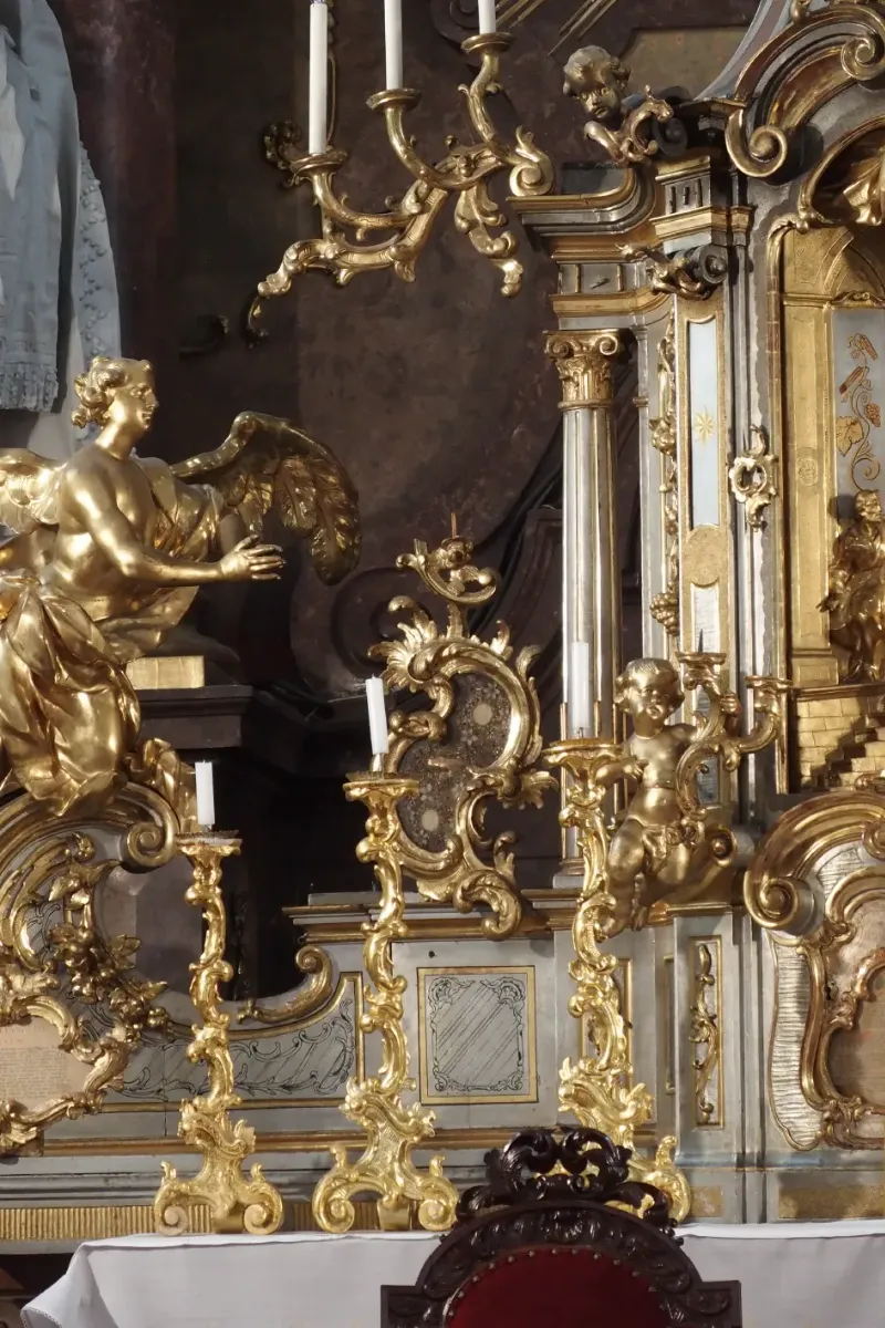 - Restaurování bočních oltářů, kazatelny a baldachýnu se sochou sv. Jana Nepomuckého.