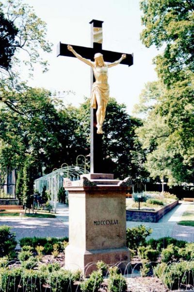 Původně hlavní kříž zrušeného hřbitova z r. 1848 byl značně zkorodován, pískovcový sokl byl poškozen mechanicky i destrukcí kamene. Při opravě byla provedena celková repase soklu a litinového kříže včetně pozlacení korpusu.
