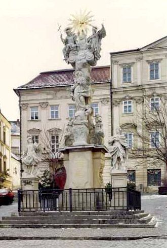 Sousoší je dílem Antonína Schweigela z r. 1729. v rámci restaurátorského zásahu bylo nutné těžce poškozenou sochu sv. Jana Nepoumuckého nahradit kopií sekanou z přírodního kamene.