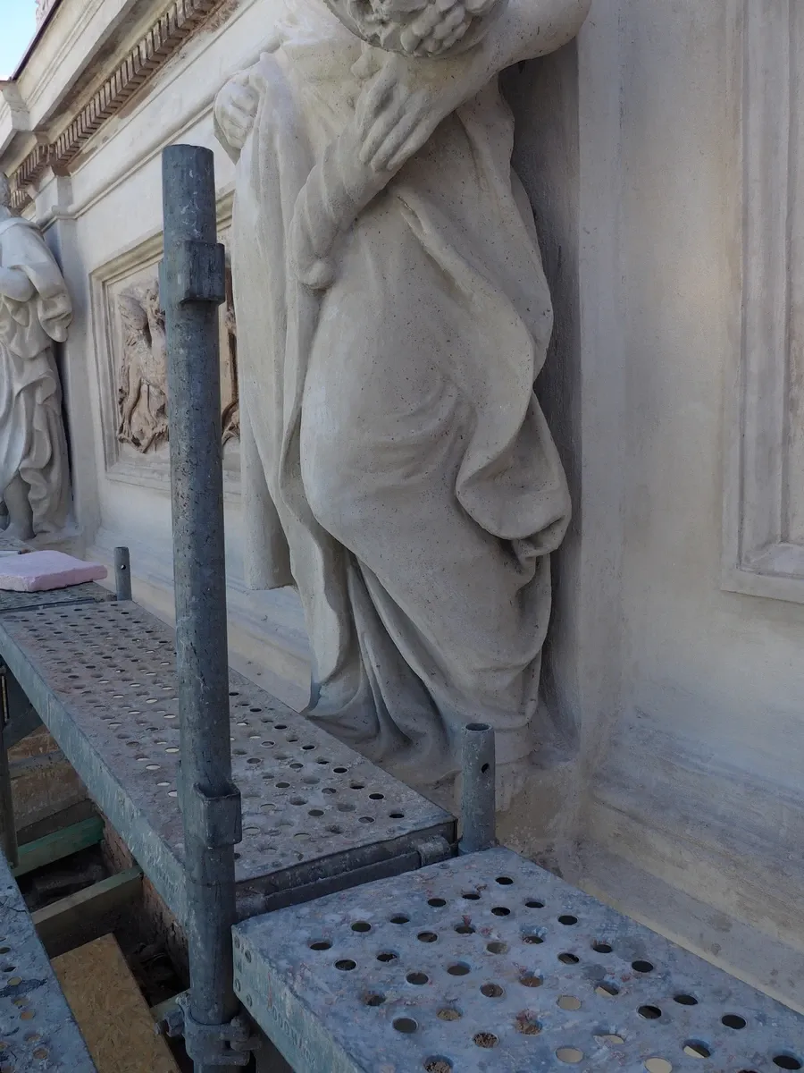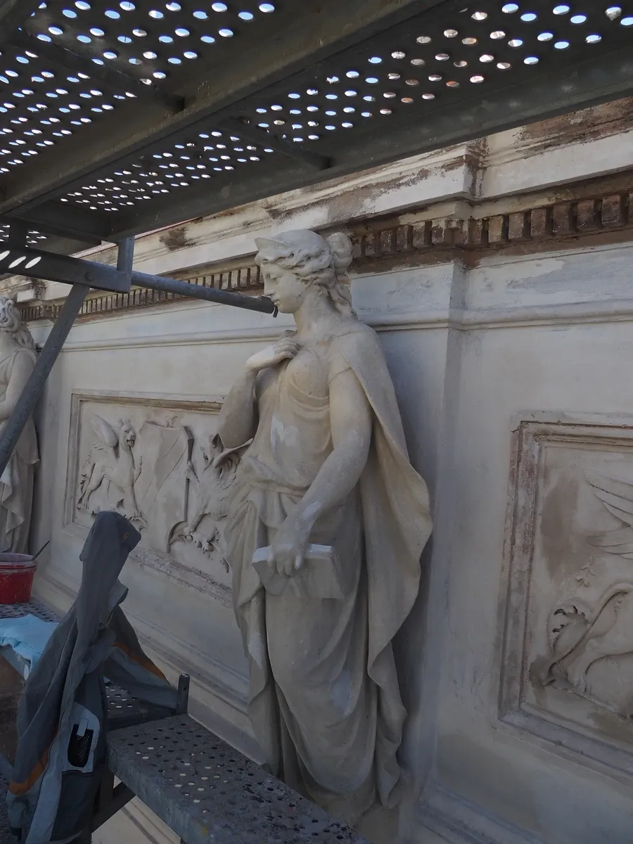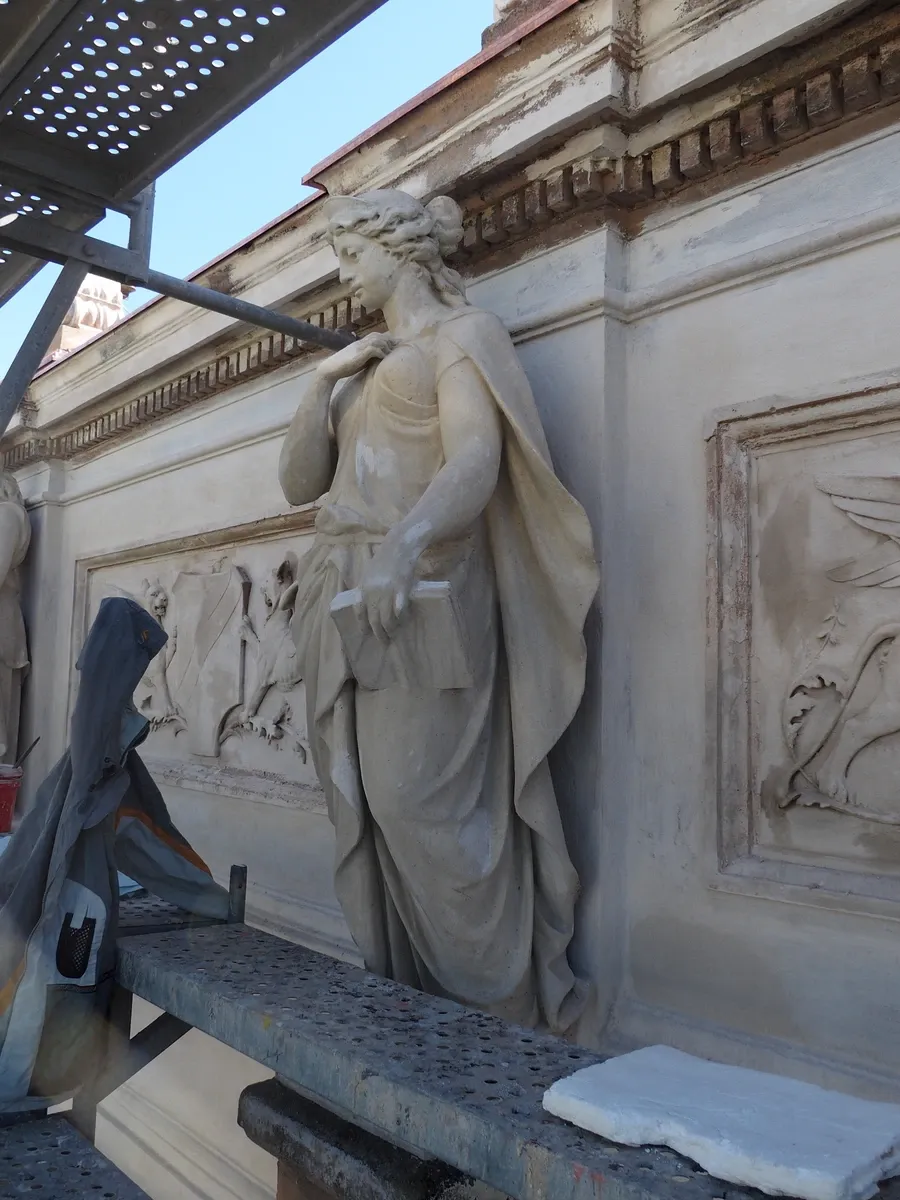 V roce 2017 jsme provedli památkovou obnovu souboru soch umístěných na atice budovy. Sochy byly demontovány a nahrazeny kopiemi – výdusky z umělého kamene. Originály byly zrekonstruovány a uloženy v interiéru budovy.
